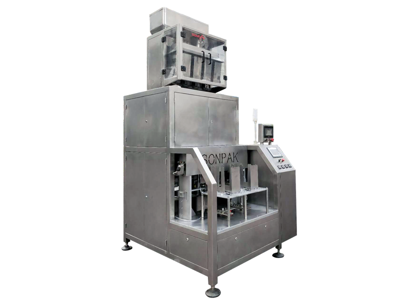 適用于五谷雜糧等形狀均勻、流動性較好的顆粒物料的真空整形包裝。全自動化,有效節約生產成本,能自動取袋、送袋、開袋、上袋、充填、整形抽真空、封口、成品輸出。